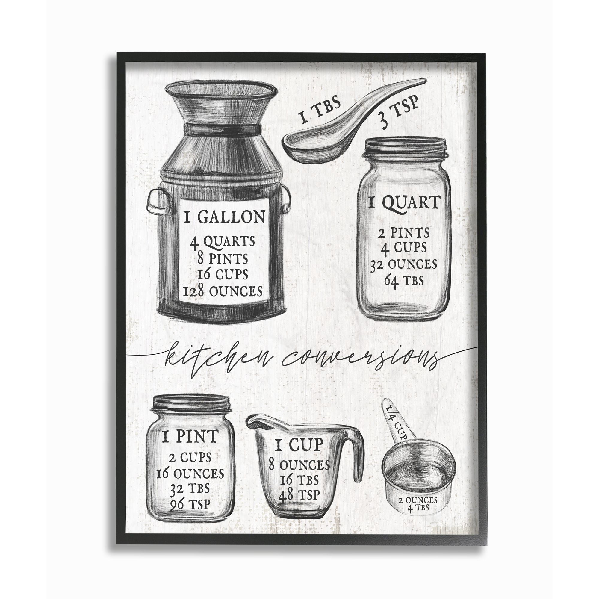 Stupell Industries Kitchen Conversion Chart Neutral Gray Word Drawing Design Framed Wall Art By Daphne Polselli Walmart Com